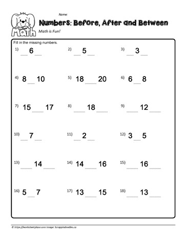Before and After Numbers Worksheets | Online Free PDFs - Cuemath Before and After Numbers Worksheets The concept of before and after numbers come along with learning how to sequence numbers in either ascending or descending order. The before and after number worksheets help students in understanding which number comes before a certain number and which number comes after a certain number.
